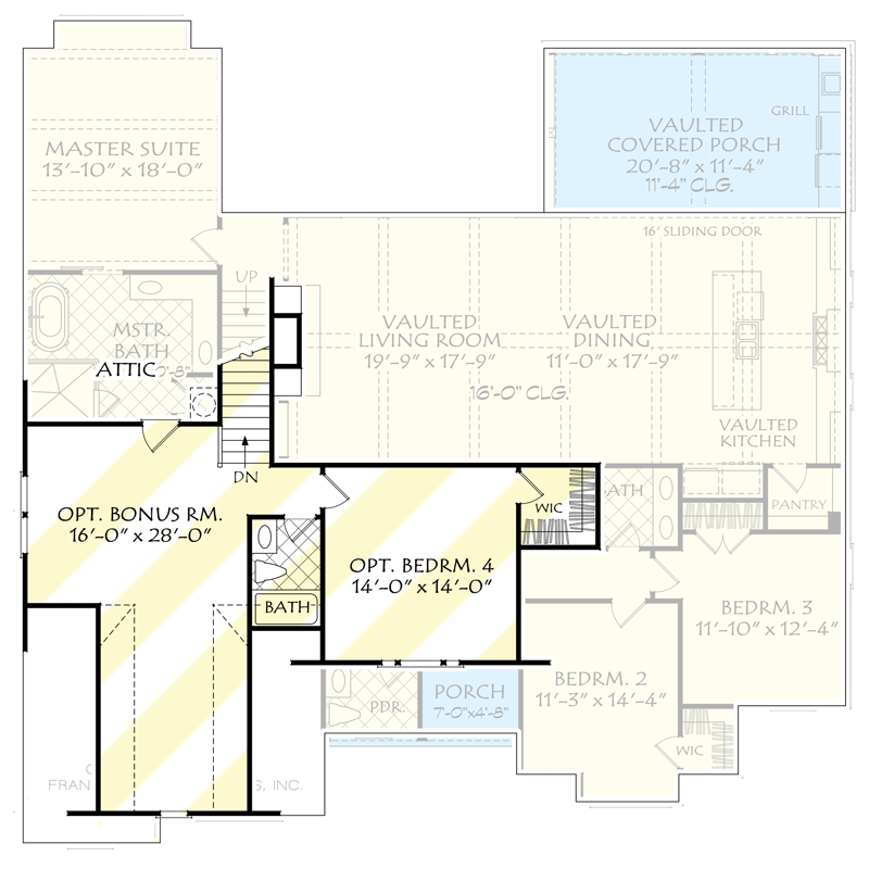 This New American farmhouse design combines bright, open living spaces with practical bedroom placement and thoughtful transitions between zones. With its vaulted great room, comfortable primary suite, flexible secondary spaces, and strong indoor-outdoor connection, it supports both daily routines and lively gatherings. It’s a design that feels spacious without being overwhelming, welcoming without being formal, and timeless without sacrificing modern convenience.