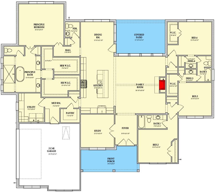 New American House Plan with 4 Beds, Study & Covered Patio – ~3,106 Sq Ft of Open, Comfortable Family Design