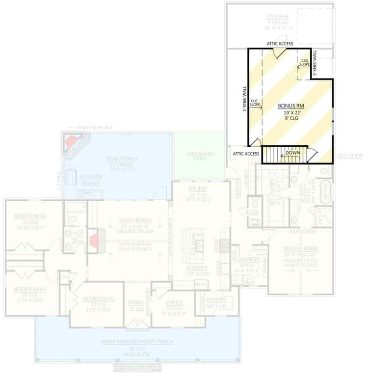 For future expansion or added flexibility, this plan includes an optional bonus room above the garage (~433 sq ft) — a handy perk if you want space for guests, hobbies, storage, or a future home office. 4
