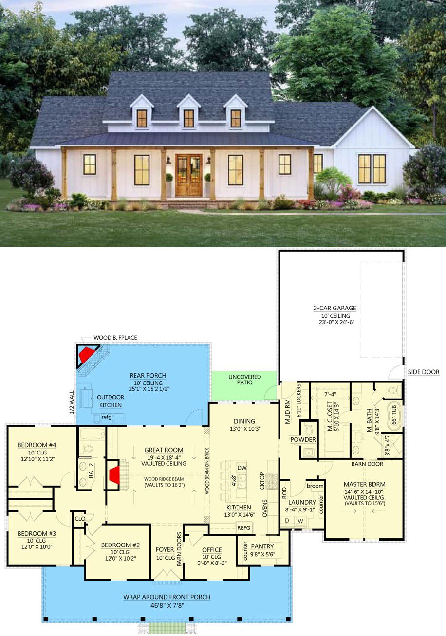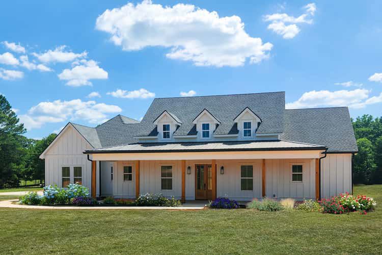 • Style: Country / Traditional Farmhouse — dormers, covered porch, practical proportions with classic charm. 8