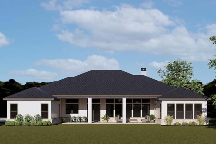 This plan uses a “split-bedroom, U-shaped” layout that gives the master suite its own wing for privacy, while the three other bedrooms sit on the opposite side of the home — ideal for separation between parents and children or guests. 8