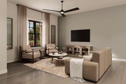 Generous windows and thoughtful placement of doors enhance the indoor-outdoor connection and ensure natural light fills the home deeply and warmly. 20 Whether you’re inside relaxing or stepping out onto the porch or patio, this plan emphasizes light, comfort, and views of your surroundings. 21