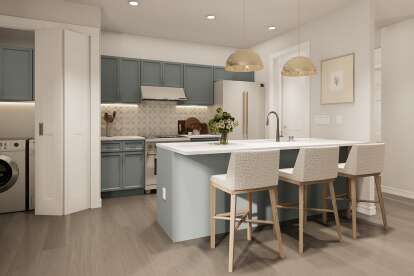 The kitchen is thoughtfully designed with ample counter and cabinet space, and a large center island serves multiple roles — from meal prep to casual dining and gathering. 9 Its proximity to the dining area keeps everything within easy reach and reinforces the home’s open, social flow. 10