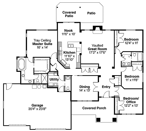 - Split-bedroom design offers privacy for the owner’s suite and flexibility for kids, guests, or a home office.