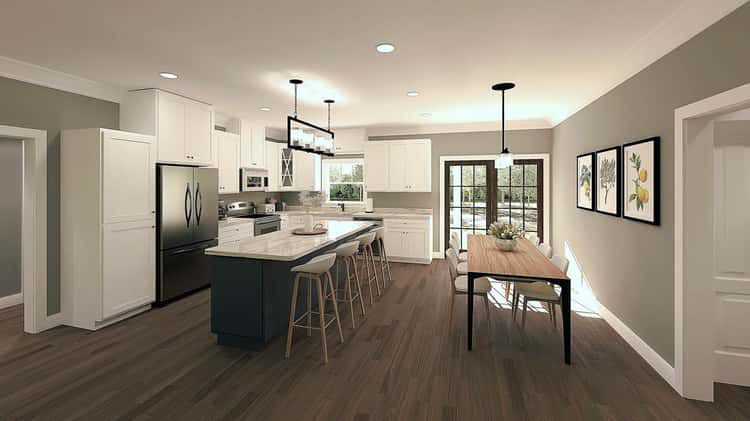 The kitchen includes a large island with snack-bar seating — perfect for casual meals, conversations while cooking, or a quick breakfast before the day starts. The open layout helps keep everyone connected, whether cooking, chatting, or relaxing. 3