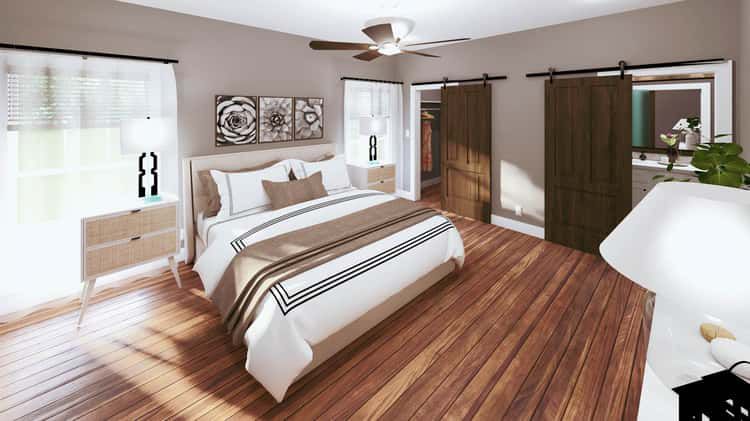 This country-ranch farmhouse plan brings together smart design, comfort, and flexibility. The dual master suites make it ideal for multi-generational living or guest stays, while the open living area and functional layout suit everyday life. With single-level comfort, practical storage, and a cozy front porch to welcome you home — it’s a house built not just for looks, but for real life. Perfect for families, families with older kids, or anyone who values privacy and practicality.