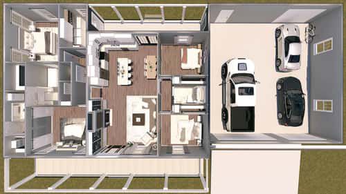 Using a typical U.S. residential construction cost range of about $180–$260 per sq ft for a house of this size and finish level, building ~2,096 sq ft suggests a rough budget of **$377,000–$545,000 USD** (excluding land, site prep, permits, utilities, and regional variations). Given the dual master suites, open design and functional details, this plan offers strong value for the square footage. 6