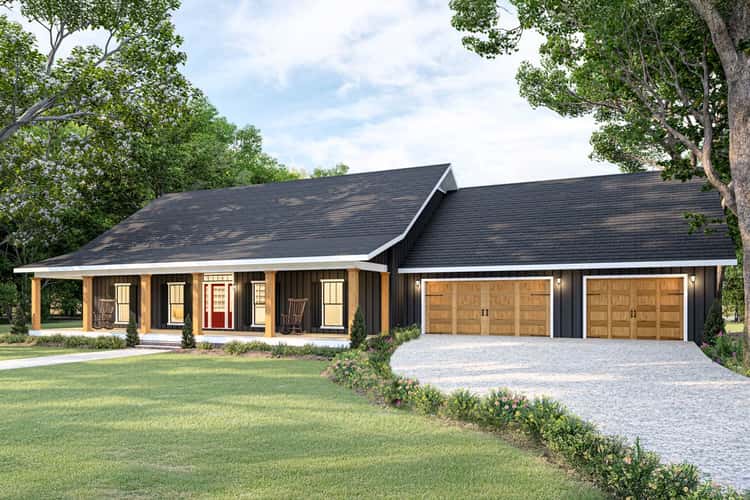 The overall footprint is modest yet well-proportioned — easy to fit on a typical suburban or rural lot, and the single-story layout keeps curb appeal simple, grounded, and practical. 1
