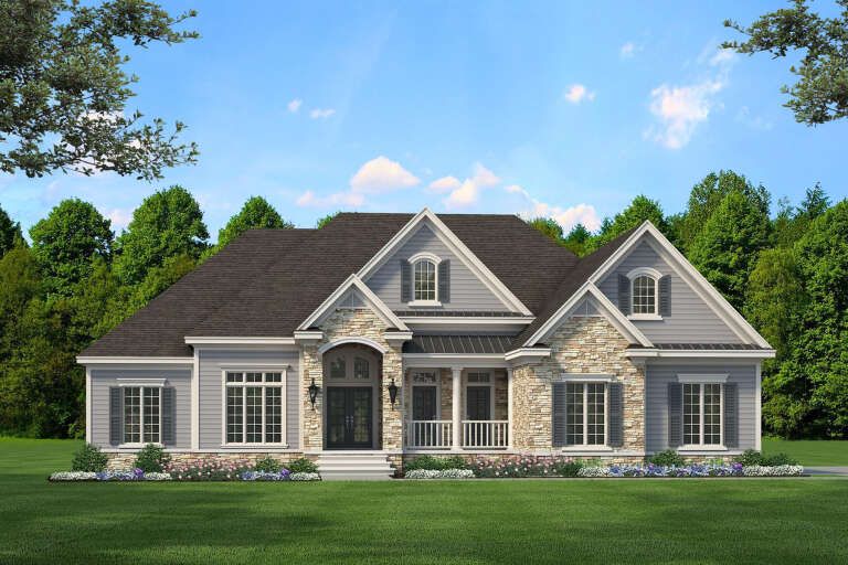 The design includes three full bathrooms and a half bathroom, ensuring convenience for both residents and visitors. 6