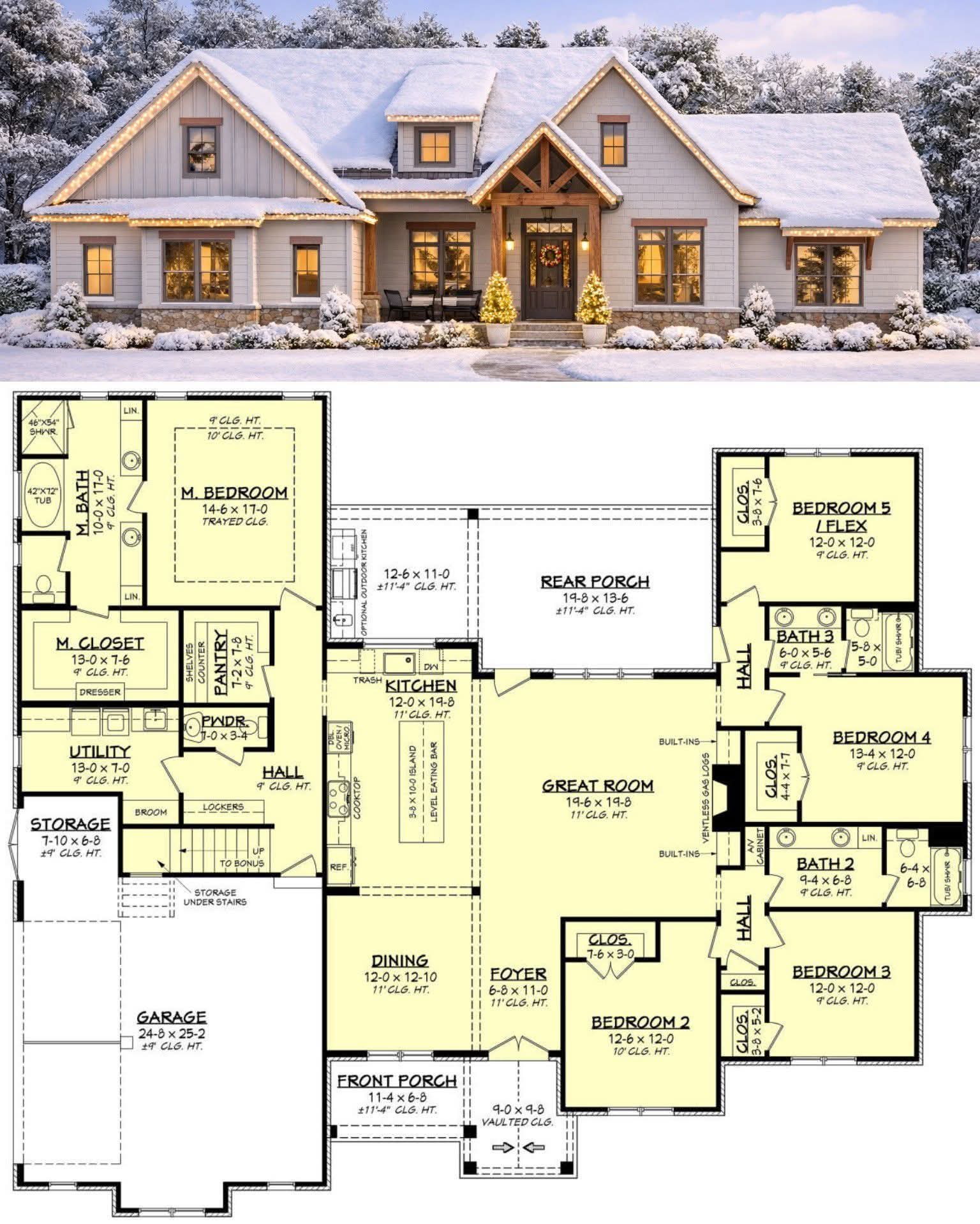 A major highlight of this plan is the large two-car garage, which provides approximately 1,200 square feet of additional space. 4 This area can also be used for storage, a workshop, or hobby space.The home also includes a mudroom and laundry area, adding convenience and helping keep the living spaces clean and organized.