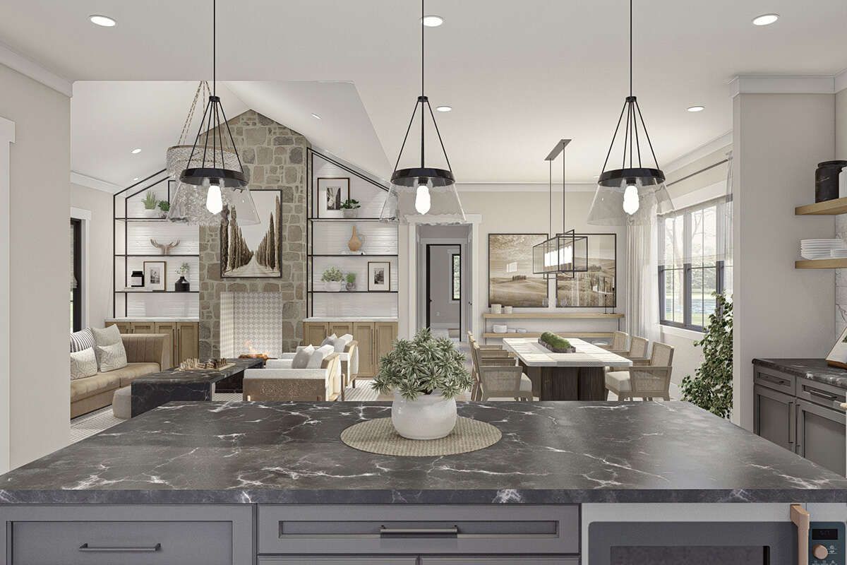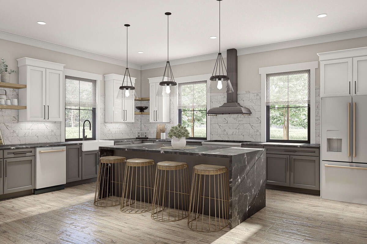The kitchen is designed for both efficiency and style, featuring a central island that provides additional workspace and seating. 3