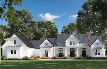 This modern farmhouse delivers generous space without sacrificing warmth or livability. Its thoughtful layout, flexible room options, and strong indoor-outdoor connection make it a home that adapts beautifully to changing lifestyles. Whether hosting gatherings, supporting a busy family, or planning for long-term comfort, this design offers space, style, and everyday ease in equal measure.