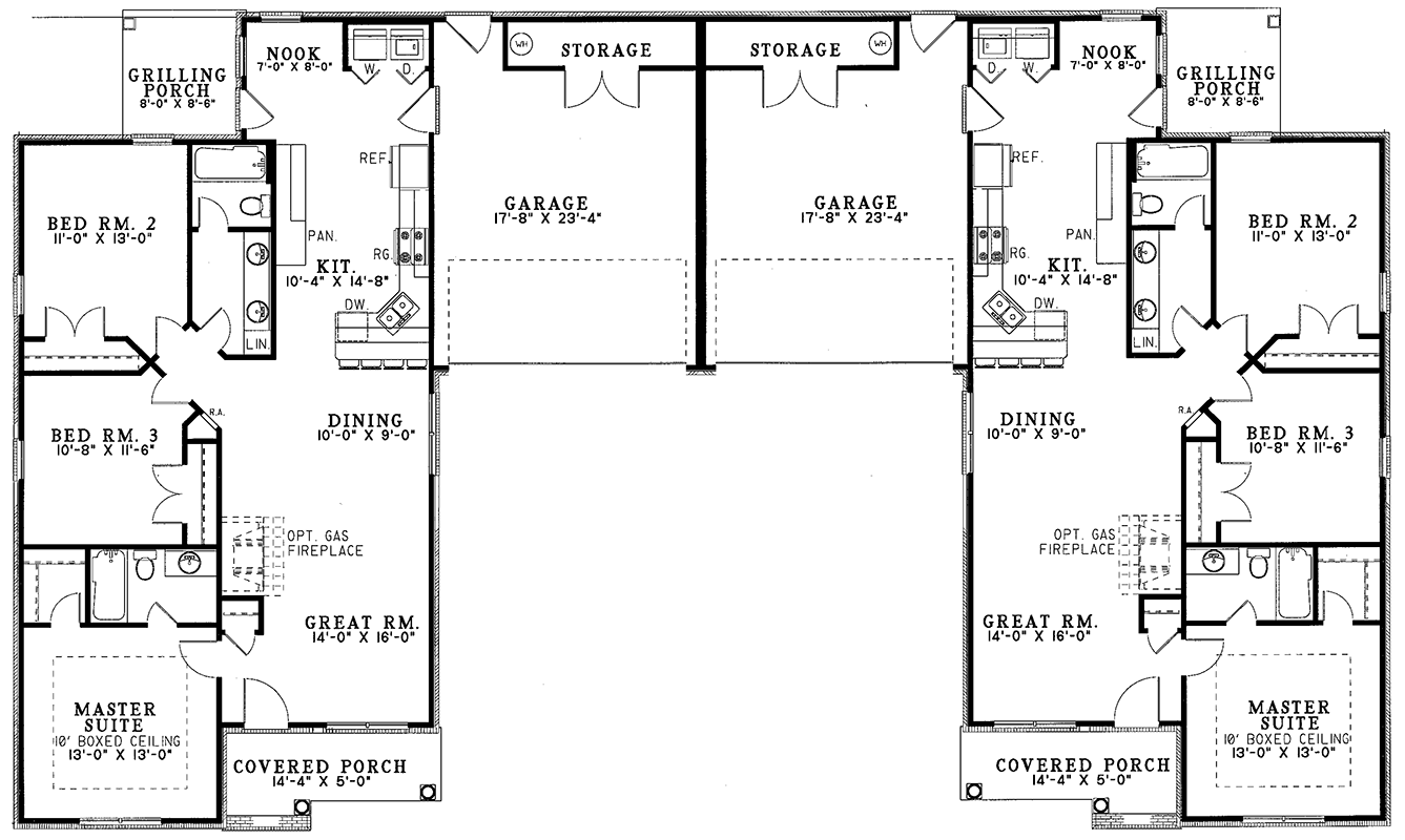 - Porch / Outdoor Access: Covered front porch + rear grilling porch per unit 0