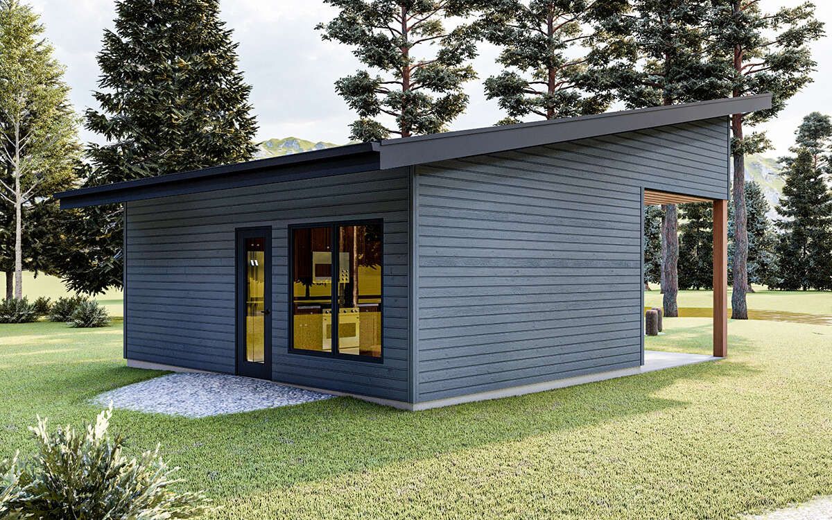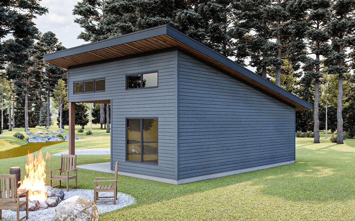 this cottage house plan is perfect for minimal living, vacation use, or as a small rental unit, delivering comfort within a very small footprint. 0