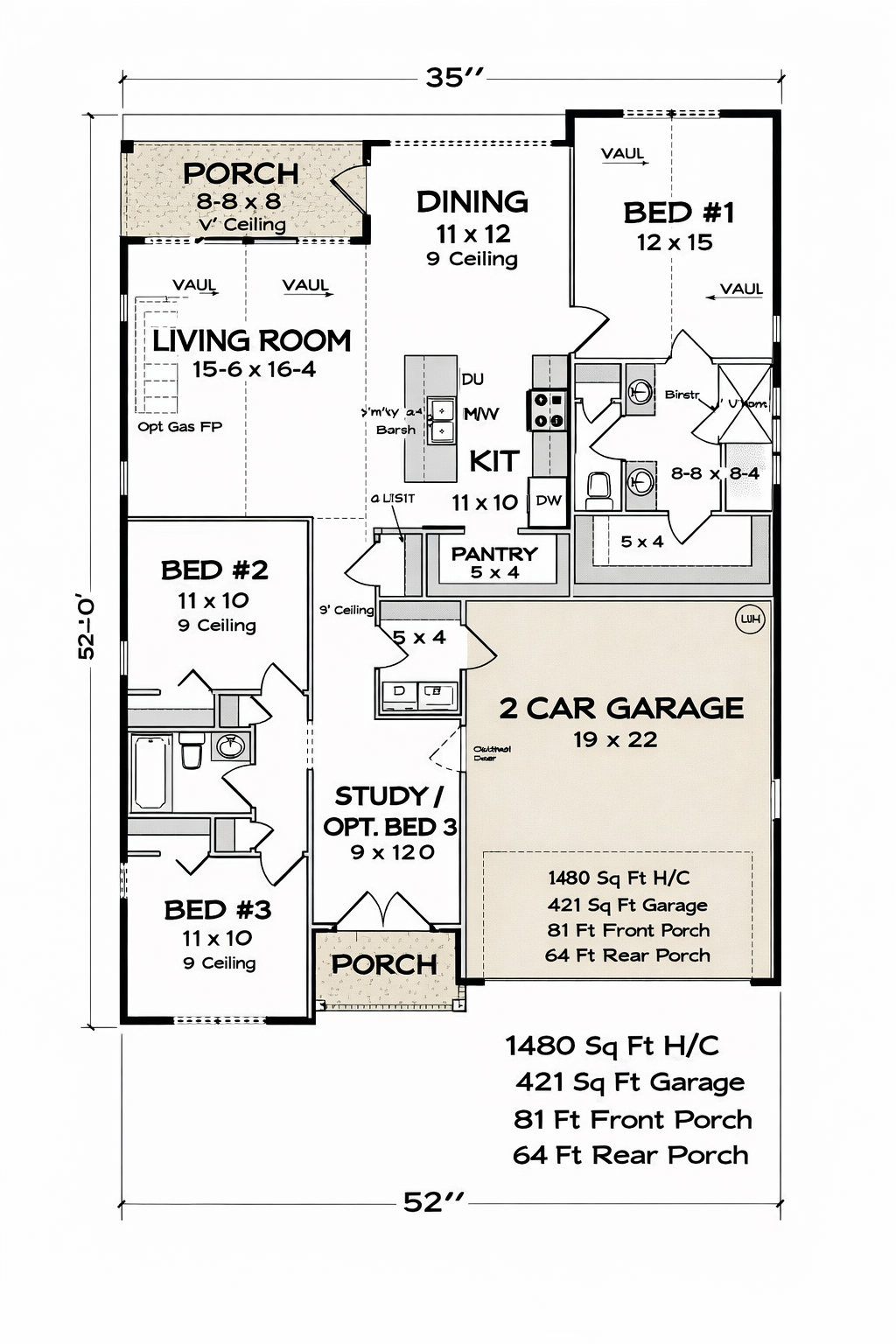 This traditional home design blends practical spaces with timeless architectural elements. Its efficient one-story flow, welcoming porches, and smart room placement make it perfect for families, downsizing homeowners, or anyone who values everyday comfort and classic style.