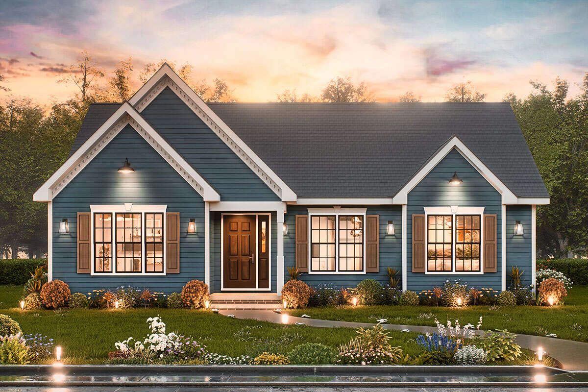 This efficient and thoughtfully designed traditional home offers approximately 1,261 square feet of heated living space with three bedrooms and two full bathrooms. Designed as a single-story residence, this plan focuses on simplicity, functionality, and comfort. Its compact footprint and practical layout make it an excellent option for small families, first-time homeowners, or those seeking a manageable and cost-effective home. 0