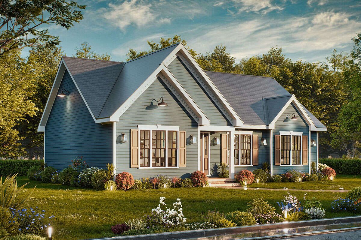 This plan does not include a garage, helping maintain a smaller footprint and lower construction cost. However, the design allows flexibility for adding a detached garage or storage structure if desired.