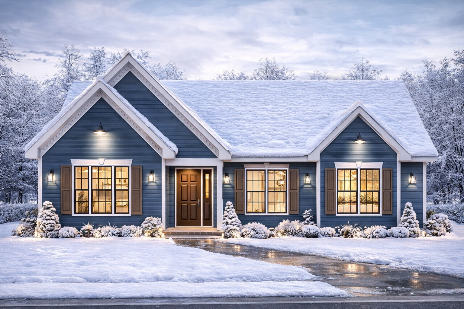 The exterior presents a clean and timeless traditional style with balanced proportions. With overall dimensions of approximately 42 feet 6 inches wide and 35 feet 4 inches deep, the home fits comfortably on smaller lots while maintaining a pleasing street presence. 1