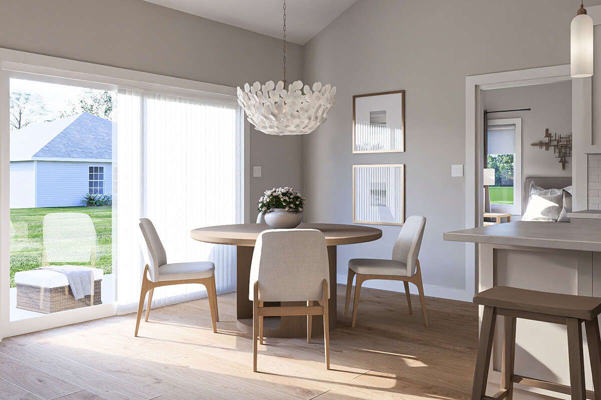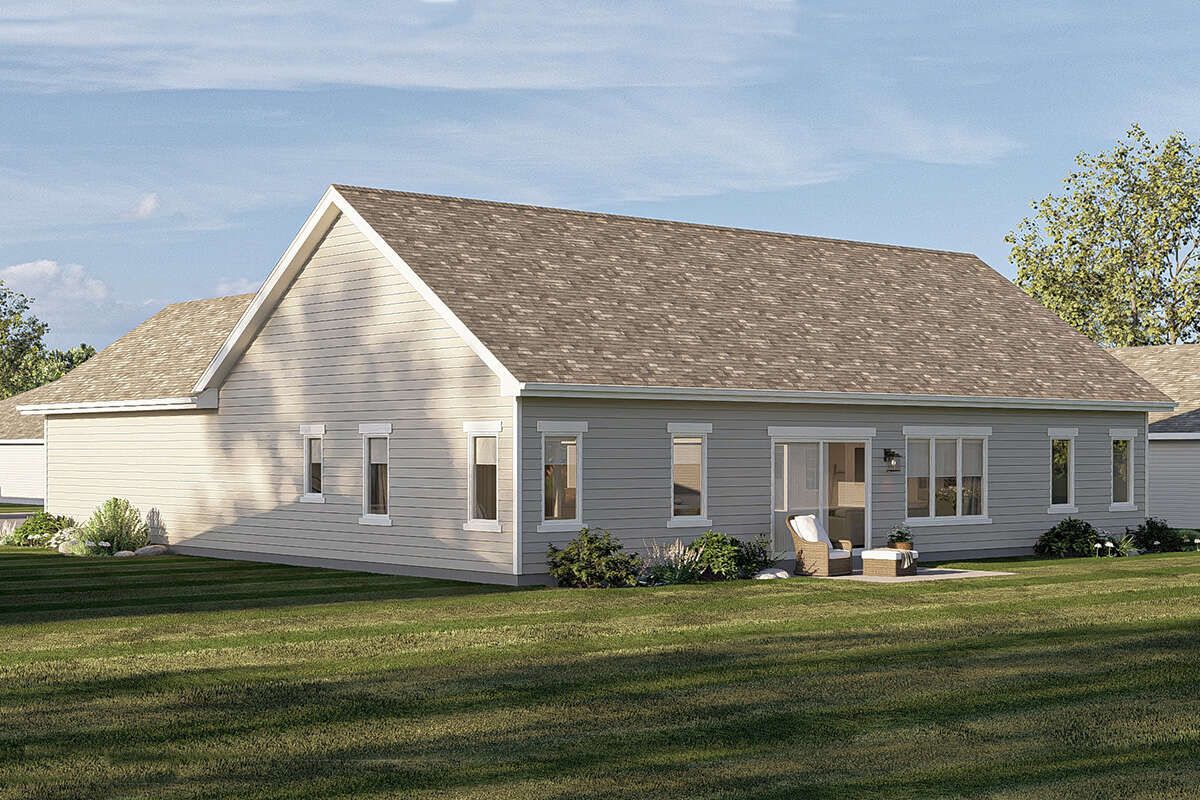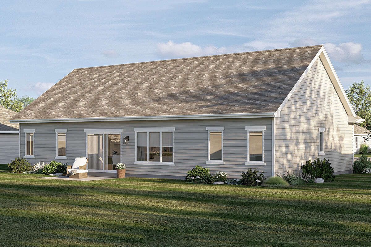 The 1,584 square feet of living space is arranged entirely on one level, providing easy movement throughout the home. The layout is designed to balance open living areas with private bedroom spaces, ensuring both comfort and functionality.