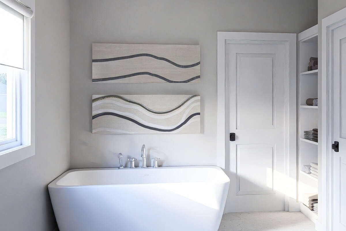 The design features two full bathrooms, ensuring convenience for both residents and guests. One bathroom is typically associated with the primary bedroom, while the second is centrally located to serve the remaining bedrooms and living areas. 2