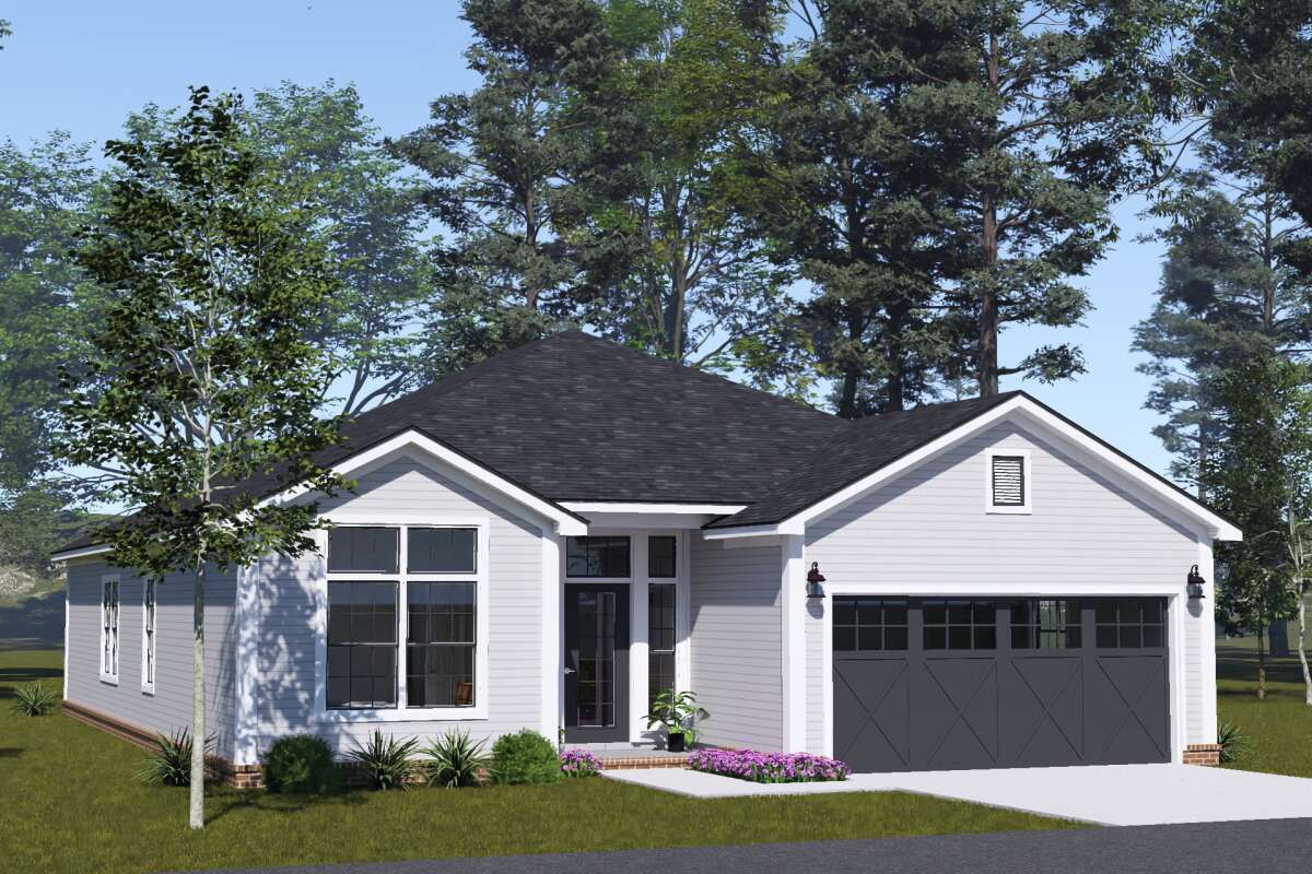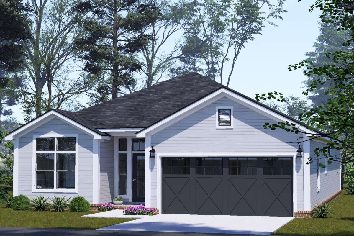 This well-proportioned traditional home offers approximately 1,591 square feet of heated living space with three bedrooms and two full bathrooms. Designed as a single-story residence, the plan combines timeless styling with practical features for everyday living. With its efficient layout and integrated two-car garage, this home is ideal for families seeking comfort, convenience, and classic design. 0