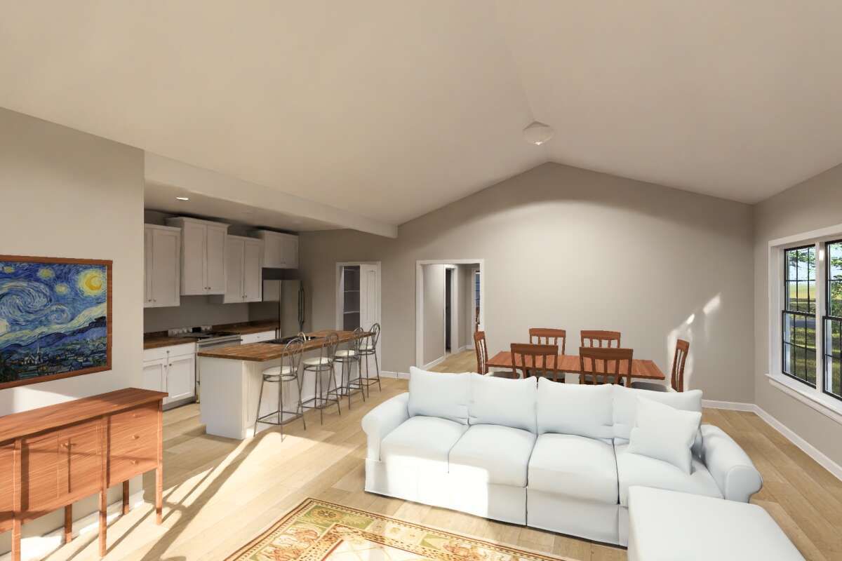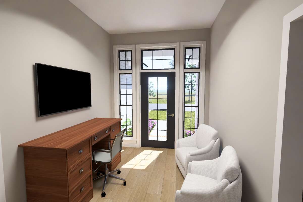 All 1,591 square feet of living space is arranged on one level, making the home easy to navigate and highly accessible. The layout is designed to balance shared living areas with private bedroom spaces, ensuring both comfort and practicality. 2