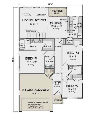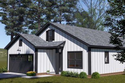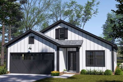 The exterior evokes classic traditional character with balanced rooflines, framed windows, and welcoming front porch space. At roughly 35′-8″ wide × 58′ deep, the home has a tidy footprint that suits modest to medium lots while delivering enduring appeal. 1 The garage faces the front, enhancing curb presence with symmetry and practicality — a classic look that works in suburban or rural settings. 2