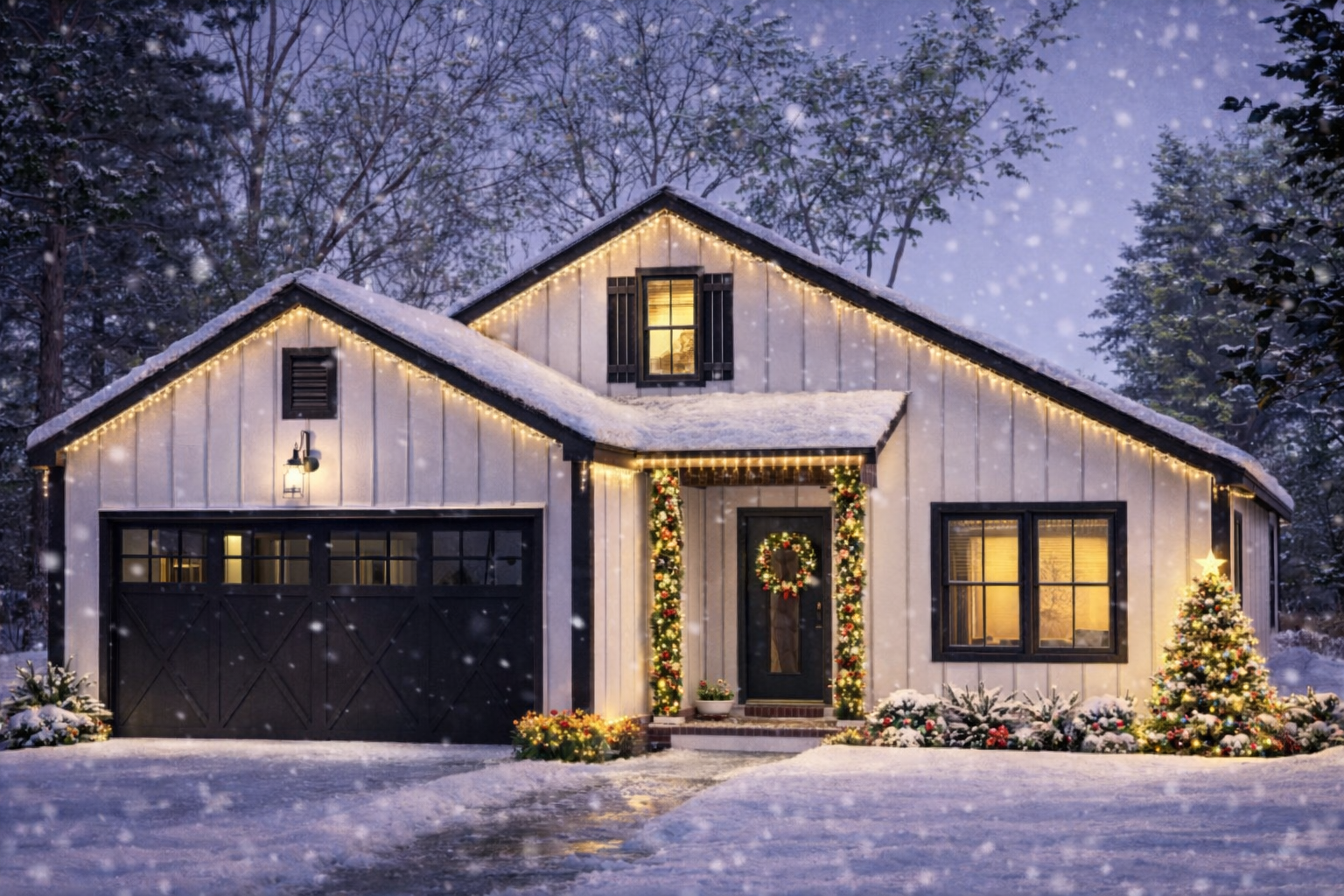 A covered front porch sets an inviting tone, creating a relaxed outdoor space for morning coffee or casual conversation with neighbors. 3 Thoughtfully placed windows wrap the living areas, inviting natural light in and strengthening the connection between indoor comfort and the outdoors. 4 A rear door likely leads to a backyard space suitable for patio seating, grilling, or garden views — perfect for family time or entertaining on sunny afternoons. 5