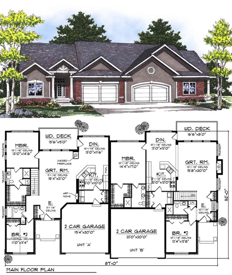 The building houses two side-by-side ranch-style units. Each unit is mirror-image (or close to) but with subtle differences, giving each its own sense of identity. 2
