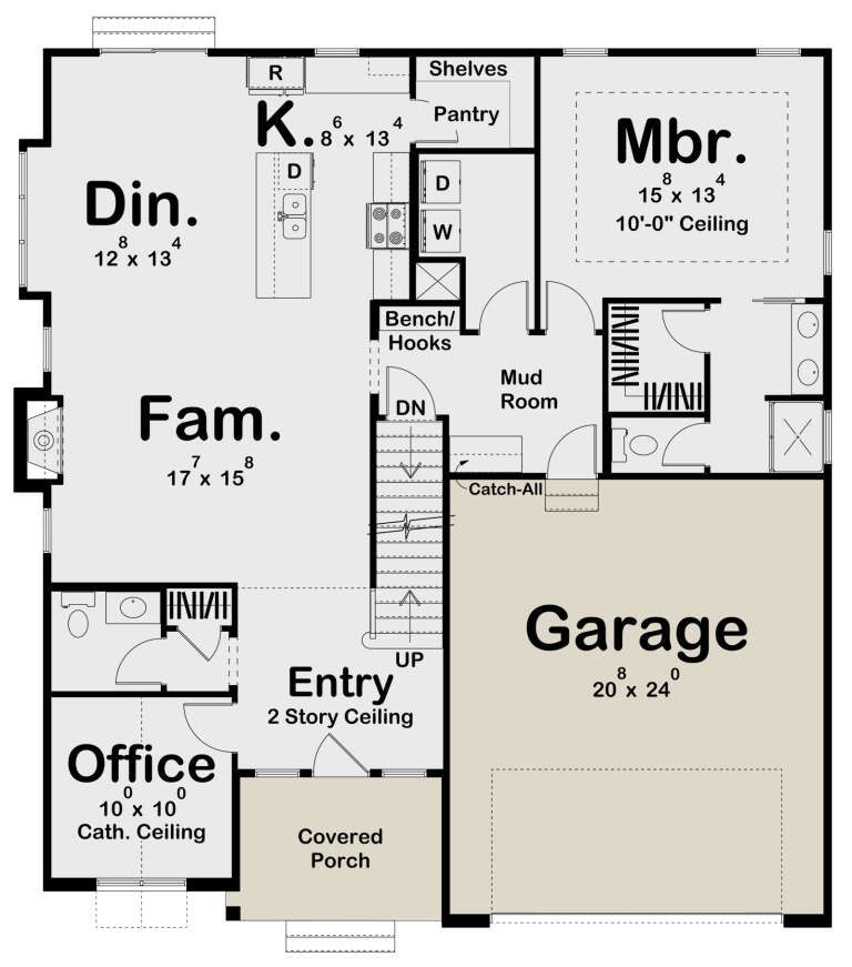 A well-placed half bath on the main level adds convenience for visitors and daily routines without interrupting private spaces. 20 The laundry area — also on the main or upper level depending on build choices — helps centralize chores and keeps laundry tasks efficient and out of sight. 21 Entries from the garage include a small mudroom-style zone to help organize coats, shoes, and gear before transitioning into the main living spaces. 22