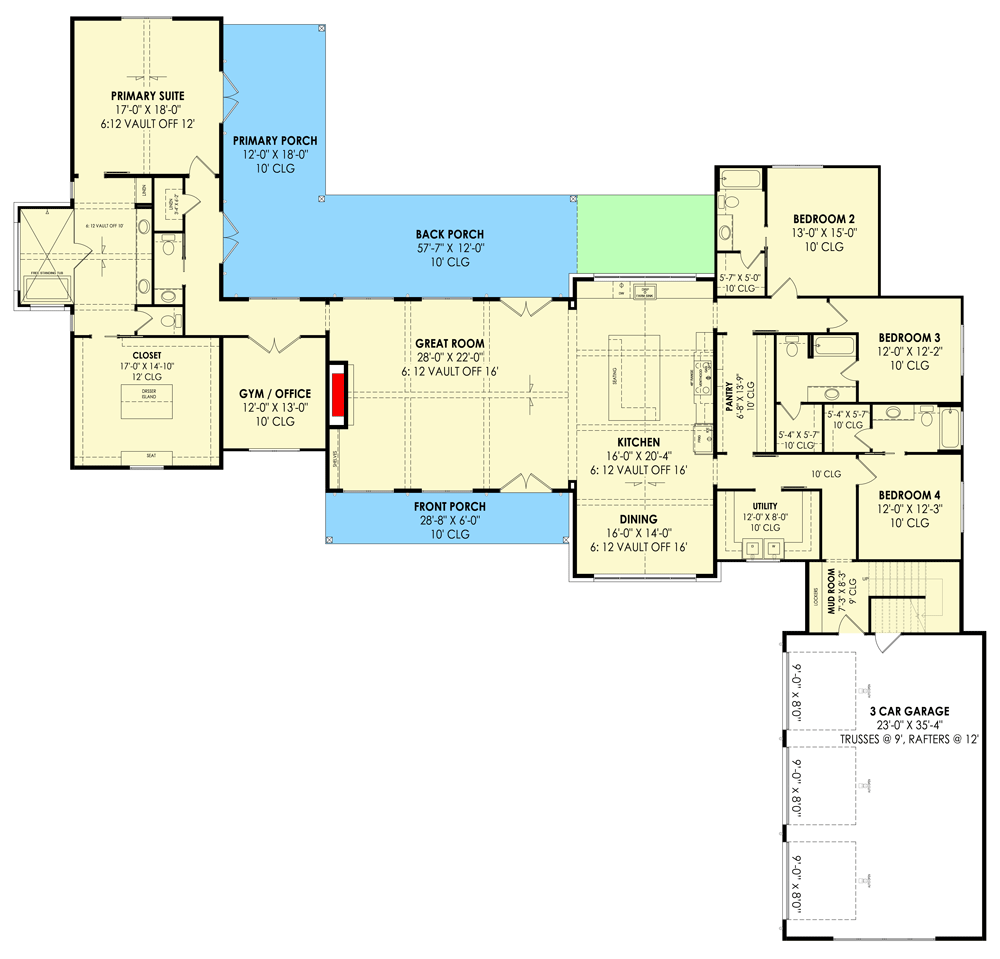 The **attached 3-car garage (~863 sq ft)** provides generous parking and storage, arranged to create a courtyard-style entry that enhances privacy and curb appeal. 0 Inside, a mudroom with built-ins rounds out the plan’s everyday practicality, helping keep coats, shoes, and gear contained and organized as you come and go. 1