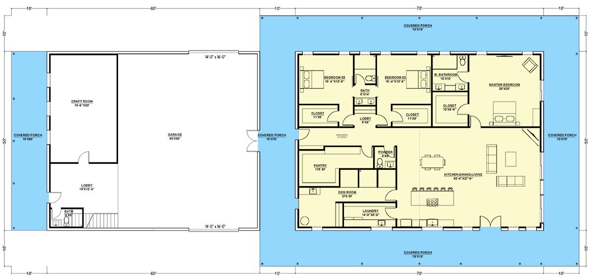 One-story homes become even more enjoyable when outdoor living is built into the layout. Many designs in this size range prioritize covered outdoor spaces because they add real lifestyle value. A spacious back porch, covered patio, or outdoor lounge area can quickly become the favorite “room” in the home—especially for families who love fresh air, weekend relaxation, and casual hosting.